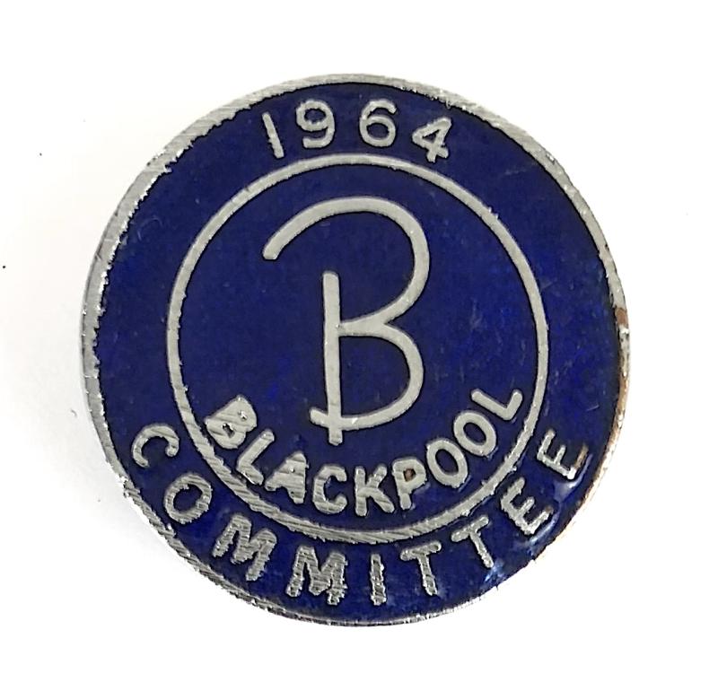 A scarce original 'Butlin's 1954 Ayr Holiday Camp silver plated enamel pin badge' depicting Mr Sun wearing a Scottish Tam O' Shanter on light blue background with red border, the reverse impressed with maker's details 'Fattorini & Sons Ltd 36 Barr St Birmingham'. Very good condition, complete with original pin fittings, no damage to the enamel.