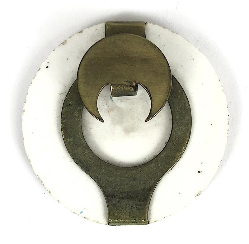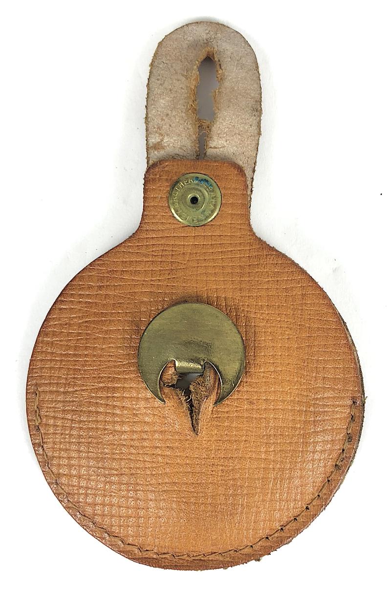 A good original formica PSV London Bus Driver's badge, license number 'N89937' held in a brass holder with lapel buttonhole fitting to the reverse, complete with its original leather case. Very good condition, colours remain bright.