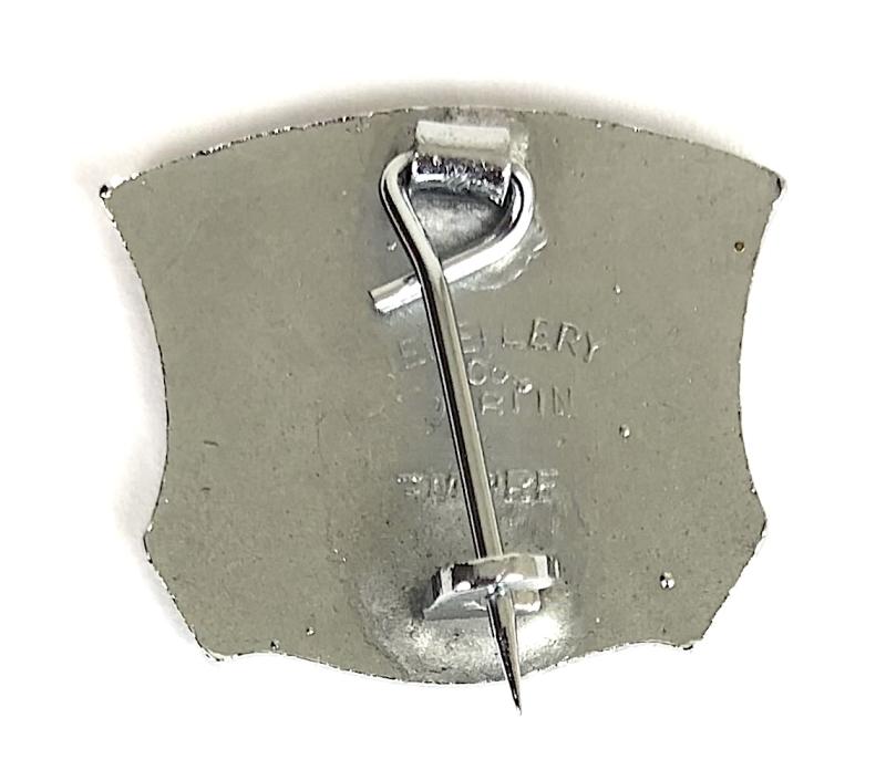 A scarce original 'Butlin's 1956 Pwllheli chromium plated badge' with red enamel dragon and labels on yellow background, the reverse with irish maker's details 'Jewellery Co Dublin Empire'. Very good condition, complete with original pin fittings, no damage to the enamel.