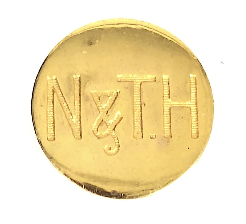 A scarce original mid 20th century period 'Newmarket and Thurlow flat gilt hunt button style pin badge ' bearing the hatched initial 'N&TH' the reverse impressed with maker's details 'Firmin London'. Very good condition, complete with original pin fittings.