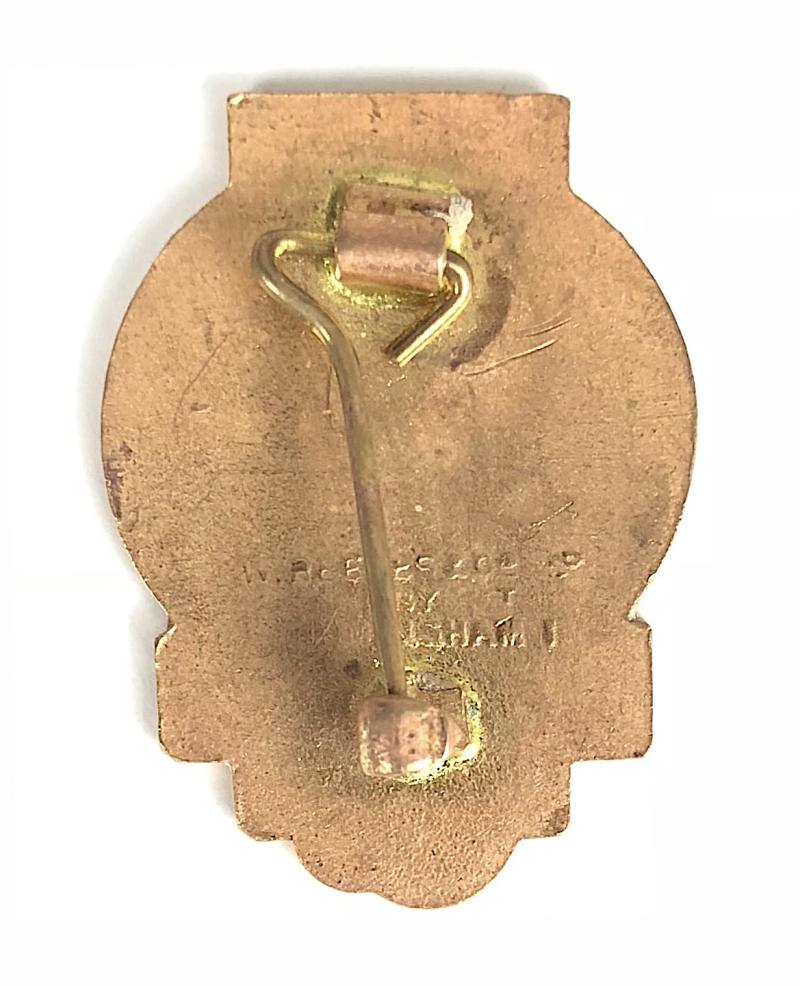 A good ORIGINAL early 'Butlin's 1948 Skegness gilt and enamel badge' displaying a pink mermaid, the reverse impressed with maker's details 'W.Reeves & Co Tenby St Birmingham 1'. Very good condition, complete with original pin fittings, no stress marks or damage to the enamel, minor enamel very minor infill flaws, gilt finish remains bright.