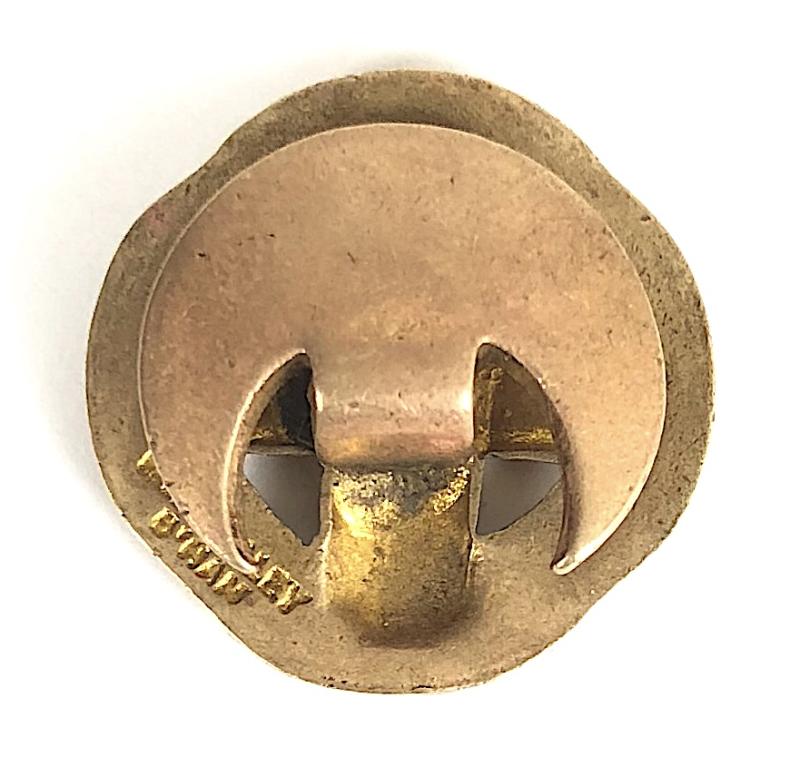 A scarce original circa 1899 to 1926 period 'Boys' Life Brigade lapel badge'; small gilt brass 'Lifebuoy' mounted with red enamel cross bearing the letters 'BLB' vertically as well as horizontally; the reverse impressed with maker's details 'W.J.Dingley B'Ham' (William James Dingley Warstone Lane Birmingham.). Very good condition, complete with original buttonhole fitting, no damage to the enamel, gilt finish remains bright.