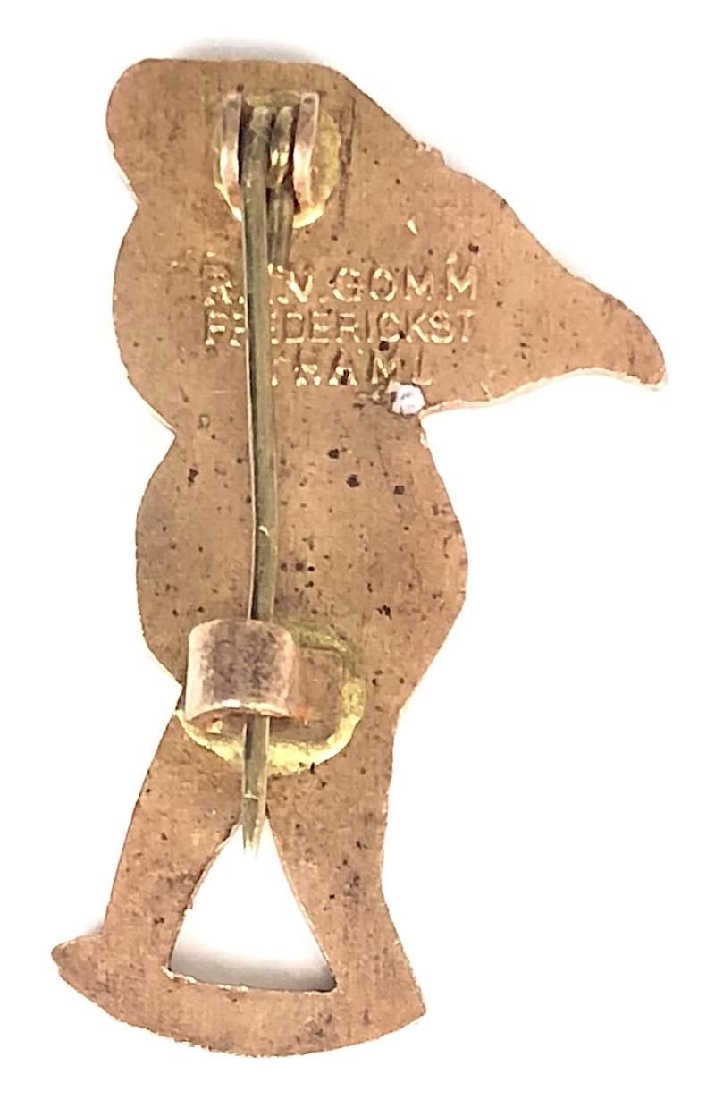 A scarce original short lived circa 1968 period 'Robertson's Golly boy scout pin badge' wearing green beret and displaying advertising slogan 'Golden Shred' to his chest; the reverse impressed with maker's details in relief 'R.E.V.Gomm Frederick St B'ham I'. Very good condition, complete with original pin fittings, no stress marks or damage to enamel.