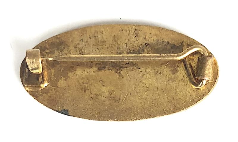 A scarce original circa mid 20th century period 'J.A.Prestwich & Co' Motor Cycle Engine promotional pin badge'; small gilt brass oval example inlaid with blue enamel depicting the 'J A P' company logo with white enamel scroll below. Very good condition, complete with original pin fittings, no enamel loss, gilt finish remains bright.