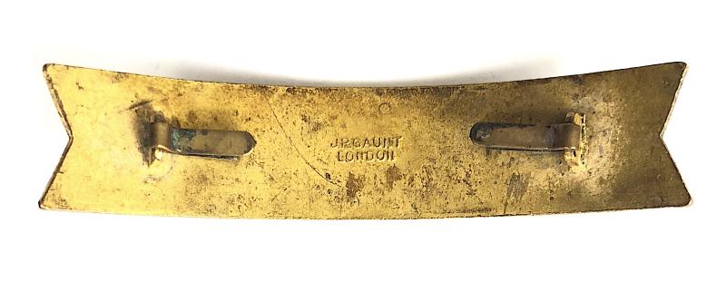 A scarce original post 1956 'British Railways Midland Region Foreman gilt brass curved cap badge' with red enamelling denoting the region, the reverse impressed in relief the maker's details 'J.R.GAUNT LONDON'. Very good condition, complete with original two flat oblong loops and brass securing blades, no stress marks or enamel loss.