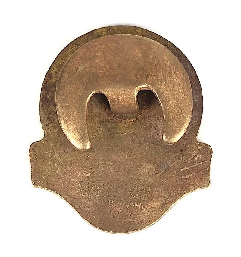 A scarce original Second World War period 'ARP Broadwell Works air raid precautions home front badge'; gilt brass disc inlaid with red enamel and inscribed 'ARP' blue enamel BROADWELL WORKS title below; the reverse impressed with maker's details 'Fattorini & Sons Ltd, Bradford Works Birmingham'. Very good condition, complete with original buttonhole lapel fitting, no stress marks or serious enamel loss.