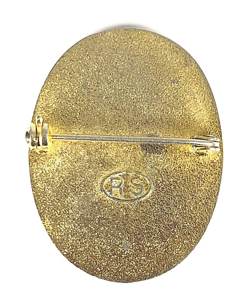 A scarce original circa late 20th century period 'Middlesex University Nursing badge'; oval chromium plated example inlaid with cream enamel and bearing the London Universities shield; the reverse impressed with maker's details 'RS' within an oval surround. Good condition, complete with original pin fittings, brown stubborn stain to cream enamel.