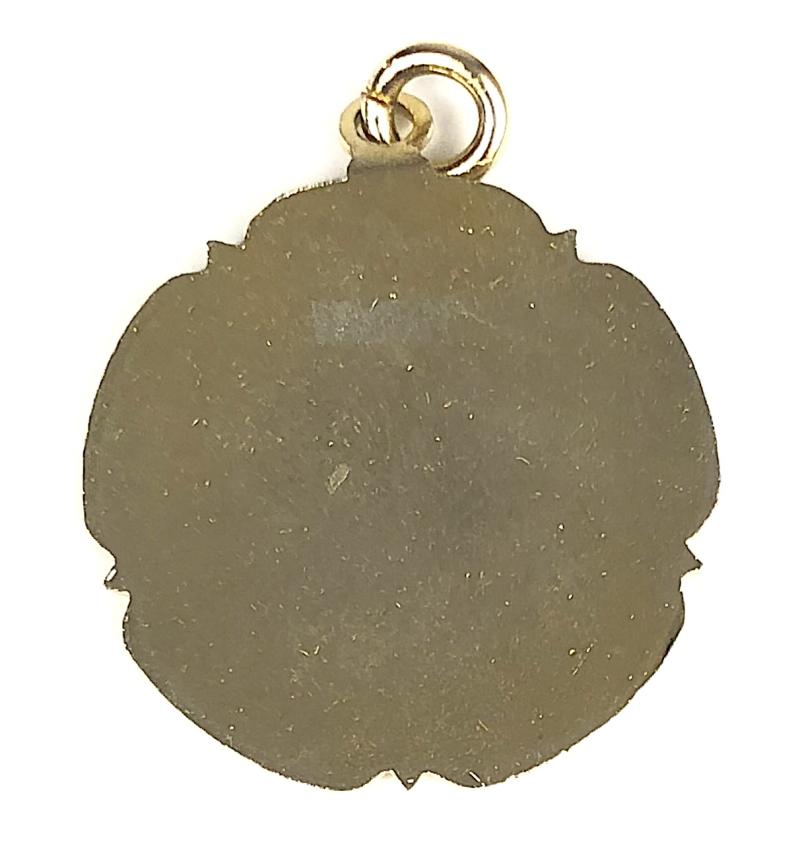A good unusual vintage period 'Warner Holiday Camp darts match gilt medallion displaying a red, black and green enamel darboard. Very good condition, complete with original ring suspension, no stress marks or damage to enamel, gilt finish remains bright.