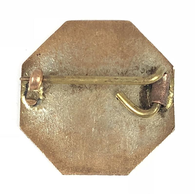 A scarce original Second World War period 'I & R Morley Company ARP Air Raid Precauctions wardens badge'; small octagonal silver plated example bearing 'The Flying Wheel' trademark used from 1926, over red enamel 'A.R.P.' and blue enamel 'MORLEY'. Good condition, complete with original pin fittings, no enamel loss, minor wear to silver plated finish.