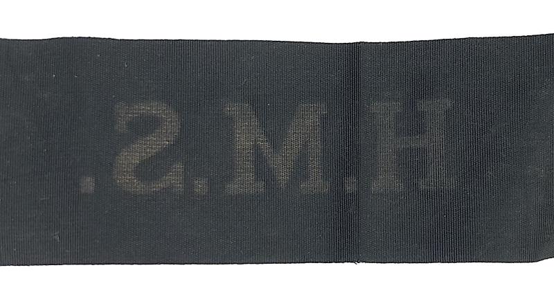Royal Navy H.M.S. Wartime Economy Issue Printed Cap Tally Ribbon approx 90mm.