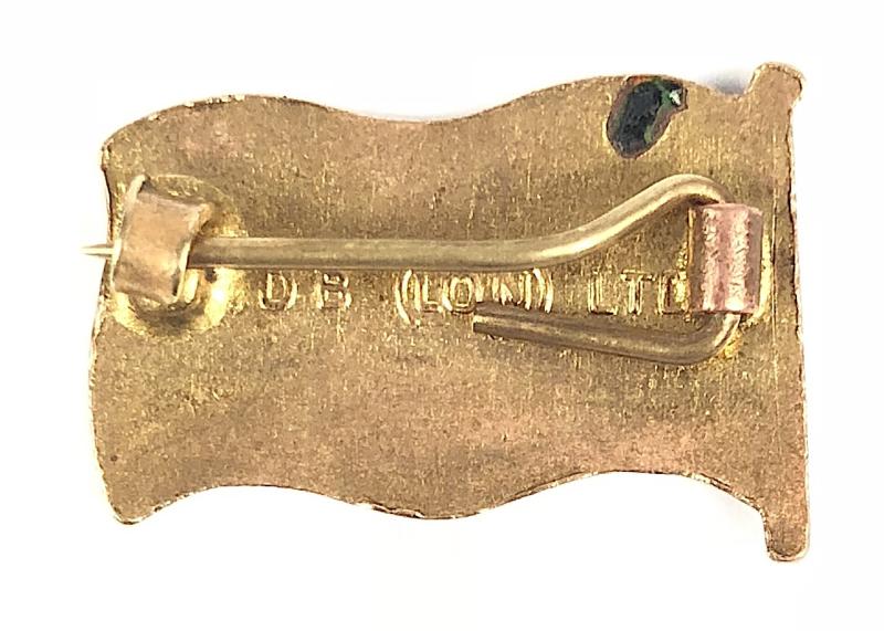 A good original circa 1960's gilt brass badge in the shape of a flag flown from a mast, inlaid with pinky mauve translucent enamel, depicting a white gull and inscribed 'Pontin's Seacroft', the reverse impressed with maker's details 'A.D.B (Lon) Ltd'. Very good condition, complete with original pin fittings, no damage to the enamel finish.