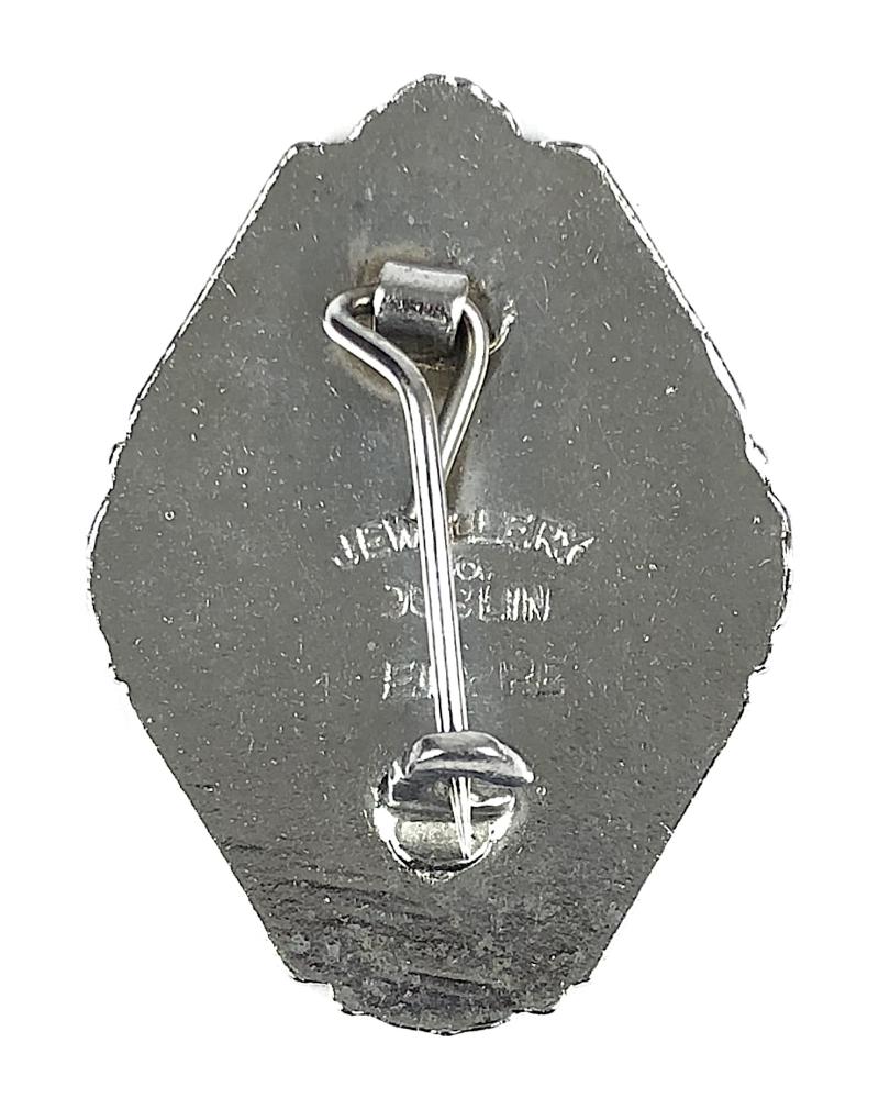 A good original 'Butlins 1956 Clacton holiday camp badge'; chromium plated with white enamel border and patchy pink background, the reverse impressed with maker's details 'Jewellery Co Dublin Empire'. Very good condition, complete with original pin fittings, no damage to the enamel.