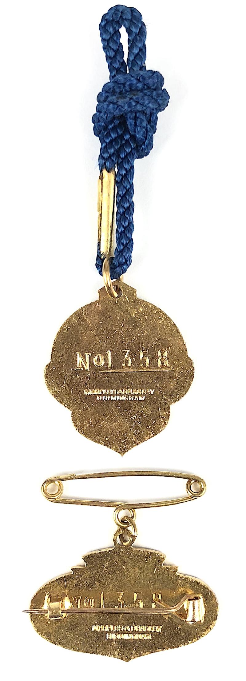A scarce original gentleman's membership and guest, matching pair of 'BARC Goodwood 1956 badges', the reverse impressed with maker's details 'Marples & Beasley Birmingham' and both impressed with official issue numbers 'No 1358'. Very good condition, complete with original cord and pin fittings, no damage to the enamel, gilt finish remains bright.