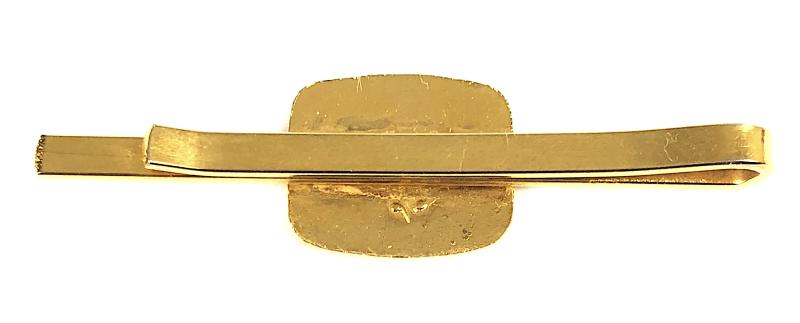 A very unusual circa 1960's period 'Labour Party supporters tie bar badge'; small recatangular gilt metal badge mounted on a tie bar, inlaid with red vitreous enamel displaying a 'Flaming Torch of Knowledge', crossed quill and shovel logo above 'Labour Party' title. Very good condition, complete with original sprung clip fitting, no damage to the enamel.