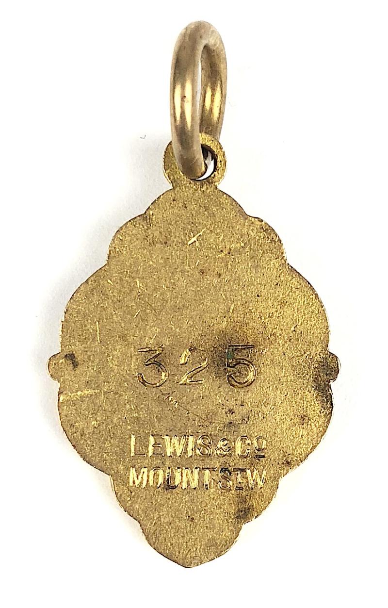 A scarce original '1901 Lingfield Park horse racing club gilt and enamel gentleman's membership badge', with official issue number number '325'; the reverse impressed with maker's details 'LEWIS & Co. MOUNT ST. W.'. Very good condition, no stress marks or enamel loss, gilt finish remains bright, cord now absent.