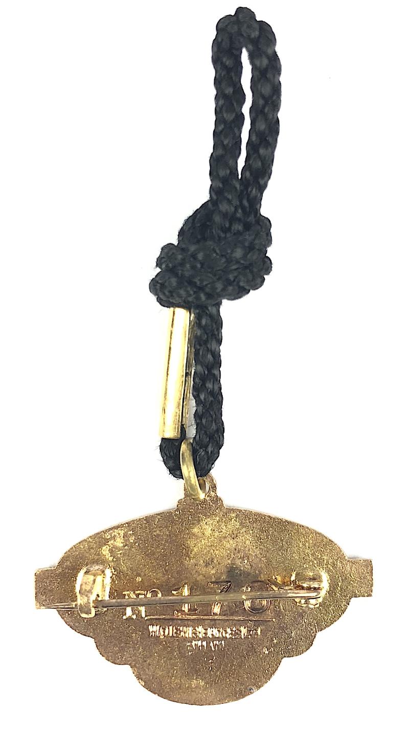 A good original '1975 - 1976 Plumpton Racecourse horse racing club badge', gilt and enamel example with official issue number '176', the reverse impressed with maker's details 'W.O.Lewis (Badges) Ld B'Ham'. Very good condition, complete with original cord and pin fittings, no stress marks or enamel loss, gilt finish remains bright.