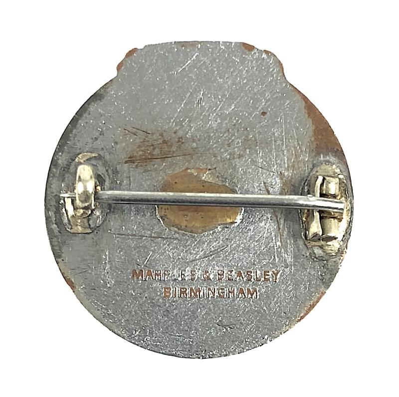 A rare original Second World War period 'City of Birmingham ARP pin badge'; small blue enamel titled horseshoe, joined at the top by the Arms of Birmingham, the central embossed plaque inscribed 'DEPUTY DIVISIONAL WARDEN'; the reverse impressed with maker's details 'Marples & Beasley Birmingham'. Very good condition to the front, the reverse has had the lapel fitting removed I would say at the time and replaced by period pin fittings, no enamel loss.