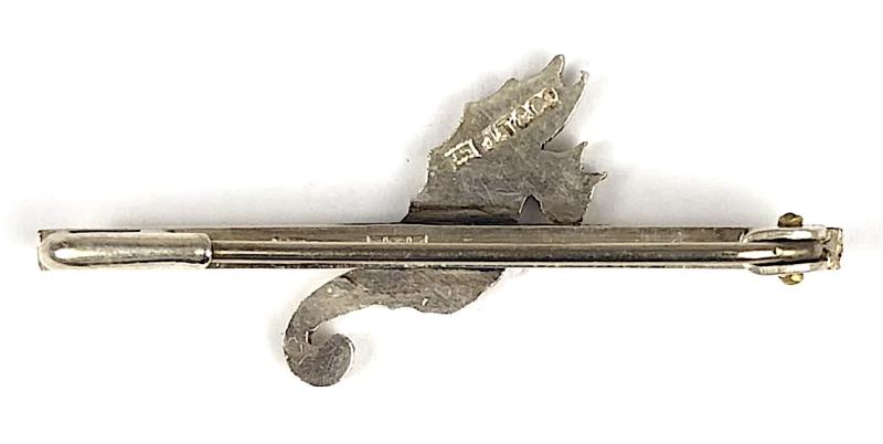 A rare original small discreet fine quality silver seahorse pin badge from the 'RAF No 203 Flying Boat Squadron crest, mounted on a bar and impressed with Birmingham silver hallmarks for 1960 and maker's details 'J.T & Co.' (John Taylor & Co London). Very good condition, complete with original pin fittings.