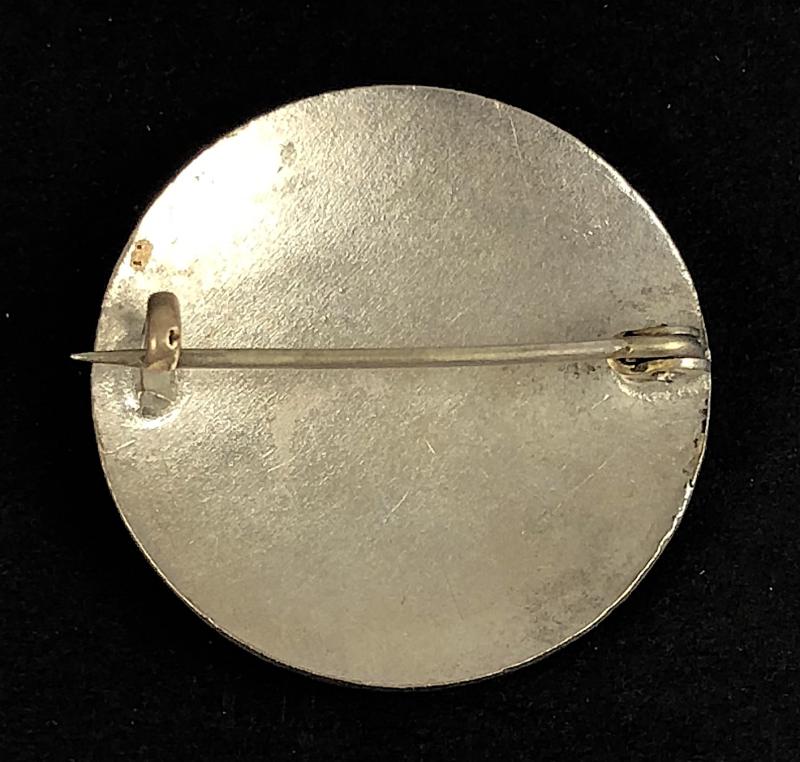 A rare original First World War post 1918 period 'Mark VIII Tank Corps pin sweetheart brooch', silver plated convex disc bearing highly detailed representation of the heavy tank 8 vehicle also known as the 'Liberty' on black enamel ground. Very good condition, complete with original pin fittings, no damage to the enamel.