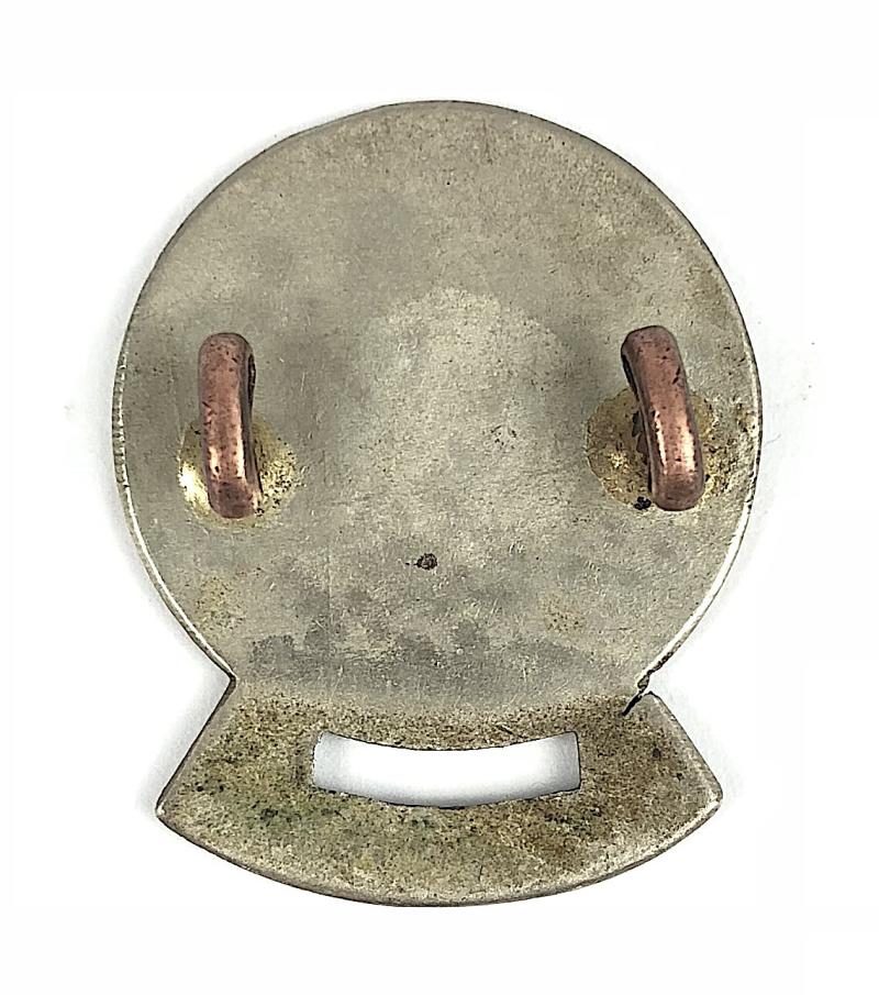 A very scarce original circa First World War period 'Tho's Firth & Sons Ltd St John Ambulance Association possibly a uniform collar badge' small white metal circlet, the centre depicting the St. John Ambulance Maltese Cross logo within title surround bearing The St.John Ambulance Association' impressed 'Rd111905' (a registration, design and patent date for 1888 -1889) with ribbon company title scroll below. Good condition, complete with original two loop fitting and split pin, minor fracture to left scroll, not affecting the general appearance.