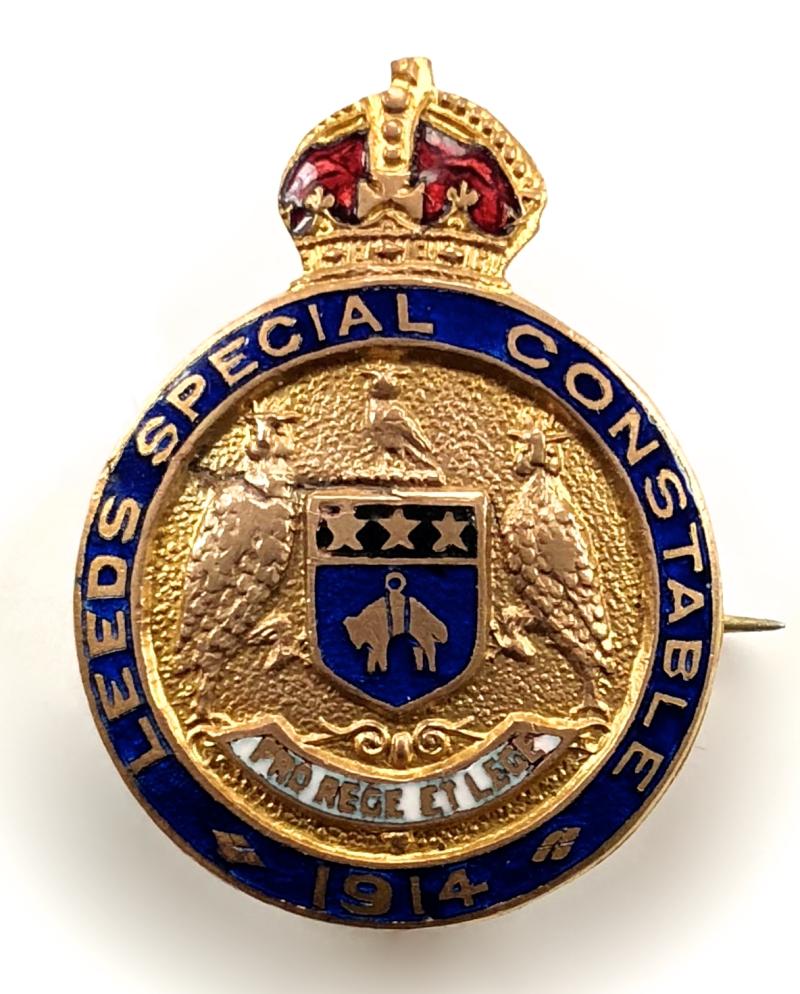 A good original pre 1953 period 'West Riding of Yorkshire Special Constable badge', large pattern King Geoge VI crowned gilt and enamel blue enamel title surround, the centre bearing an enamelled 'White Rose of York. Very good condition, complete with original buttonhole fitting, no damage to the enamel, gilt finish remains bright