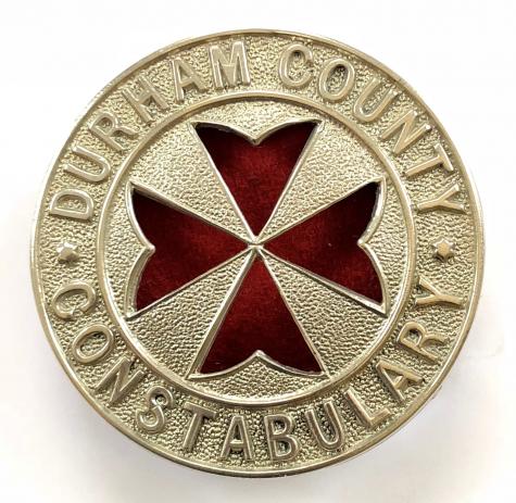 A scarce original circa Great War period 'Durham County Constabulary St John trained police officer sleeve badge'; large die-stamped nickel title circlet, St John voided symbol to seeded centre, with red felt cloth backing to accentuate the St John trained proficiency qualification. Very good condition, complete with original two loop fittings.