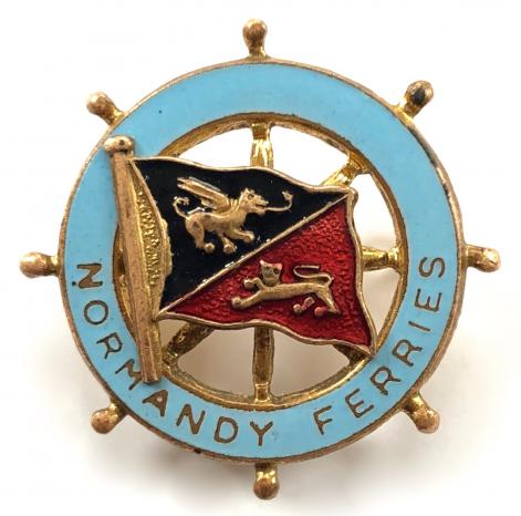 A scarce original circa 1940's period 'M.V. Circassia gilt and enamel souvenir pin brooch' in the form of a blue enamel ships wheel the centre mounted with the 'Anchor Line' shipping line swallow tail flag. Very good condition, complete with original pin fittings, no stress marks or damage to the enamel, gilt finish remains bright. An excellent example.