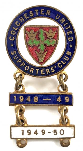 A good original vintage period 'Oxford United Football Supporters Club gilt and enamel badge' the central logo, a red oxen crossing the River Thames. Good condition, complete with original pin fittings, small nick to the enamel lower right.