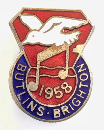 Butlins 1958 Brighton holiday camp bird and music note badge