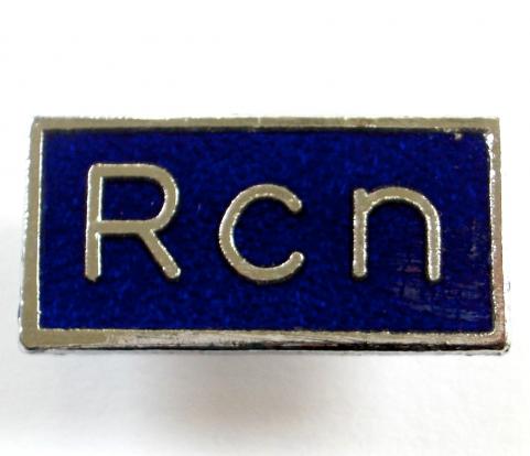 A good nurses union badge; chromium plated rectangle shape example, "RCN' initials to the centre on blue enamel background. Very good condition, retaining original pin fittings incorporating safety roller catch, enamel perfect, some loss of chromium plating to reverse.