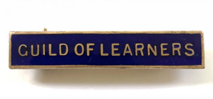 A scarce original early pre-war period 'National Federation of the Women's Institutes WI badge'; gilt rectangular bar bearing 'Guild of Learners' on dark blue enamel ground. Very good condition, complete with original pin fittings, enamel perfect, gilt finish remains bright.