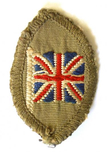 A scarce 'Boy Scouts red, white and blue embroidered 'Union Flag' on khaki woven oval bound cloth badge, the reverse with black cotton backing. Very good used condition, colours remain bright.