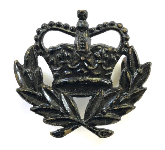 A scarce original circa 1955 to 1969 issue 'General Post Office senior postmans uniform pair of matching collar badges'; die-stamped gilt EIIR crown resting in laurel sprays. Very good condition, each complete with two loop fittings and split pins. gilt finish remains bright.