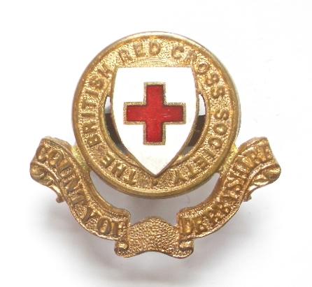A scarce original early issue 'British Red Cross Society County of Devon gilt and enamel badge', the reverse with maker's details "J.R Gaunt London" and inscribed "32859 M.G.Gock.". Excellent condition, complete with original pin fittings, no stress marks or damage to the enamel.
