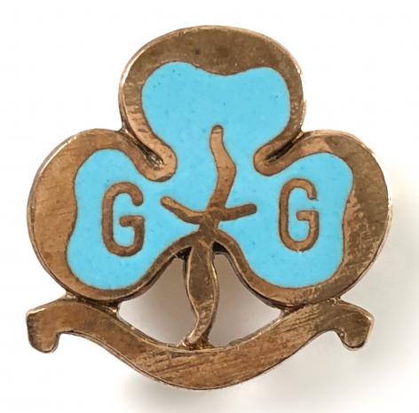 A good original circa post 1967 'Girl Guides Rangers promise badge', gilded brass trefoil inlaid with aquamarine enamel, the reverse impressed in relief 'Girl Guides Reg: Trade Mark'. Very good condition, complete with original pin fittings.