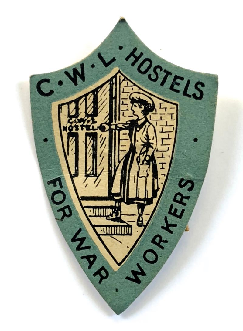 A good original First World War period 'CWL Hostels for War Workers charity flag day card badge. Good condition, complete with pin.