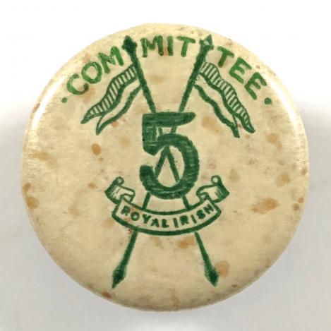 WW1 5th Royal Irish Lancers Committee celluloid tin button badge