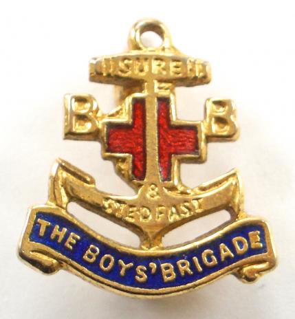A good original pre-war "Sure & Stedfast" gilt anchor lapel badge, with red cross and blue enamel scroll "The Boys Brigade", the reverse with maker's details "H.W.Miller Ltd". Very good condition, retaining original double coiled joint pin fitting and hooked catch, no stress marks or damage to the enamel, an excellent example.