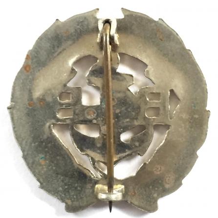 A good original die-cast nickel 'Boys' Brigade Long Service badge', this example with hatched Bs and flat back, large lettering and voided at rope end, retaining its original crook pin fitting and and hooked catch. Very good condition, an excellent example.