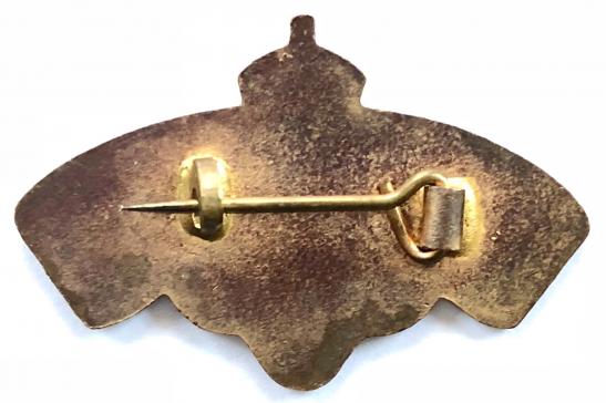 A scarce original circa '1953 Coronation souvenir'; a gilded brass Crowned Garter with central 'Royal Arms' inlaid with red, white and blue enamel, Rose, Thistle, Shamrock decoration representing the unity of England, Scotland and Ireland. Very good condition, complete with original pin fittings, enamel perfect, gilt finish with minor wear.