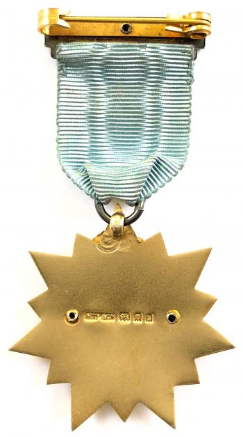 A very attractice fine quality 'Royal Masonic Institution For Boys Steward jewel' bearing a Staffordshire Knot, the reverse impressed with London silver hallmarks for 1925 and maker's details 'H.T.&Co'. Very good condition, cmplete with original ribbon and suspension bar with pin fittings, no damage to the enamel. An excellent example.
