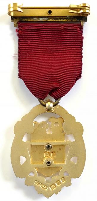 A fine quality 'Royal Masonic Benevolent Institution 1926 Stewards Jewel', the reverse impressed with London silver hallmarks for 1926 and maker's details 'H T Lamb & Co' (Masonic jeweller, St John's Square, Clerkenwell, London EC). Very good condition, complete with original silk ribbon and 'Steward' suspension bar with original pin fittings, enamel perfect, gilt finish remains bright.