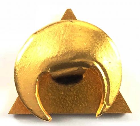 A good circa 1950's 'Medway Wheelers Cycling Club' small triangular gilt and enamel lapel badge, depicting a winged cycle wheel. Very good condition, complete with original buttonhole fitting, no damage to the enamel.