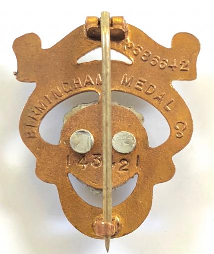 A scarce original early large pattern 'British Legion womens section gilt and enamel badge', the reverse impressed with maker's details 'Birmingham Medal Co', issue number '143421' and 'Rd686642' a Registered Design and Patent Number for 1922. Excellent condition, complete with original pin fittings, enamel perfect, gilt remains bright.