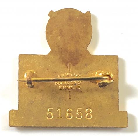 A good original circa 1935 to 1958 period 'Royal Life Saving Society Respiration Service gilt and enamel badge, the reverse impressed with maker's details 'H.W.Miller Ltd Branston St B'Ham.18' (a style of backmark produced between 1935 and 1958) with official issue number '51658'. Very good condition, complete with original pin fittings, no damage to the enamel, gilt finish remains bright.
