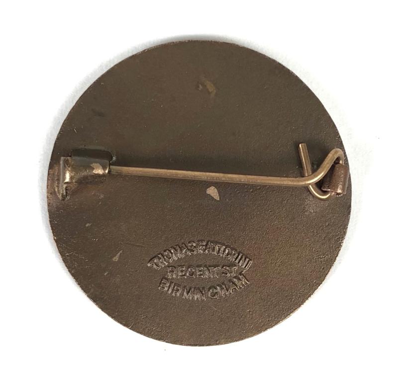 A good original circa pre-1986 'Wanstead Hospital nurses bronzed badge' displaying white enamel title surround, embossed red cross with lamp of knowledge to centre on gilt stippled ground; the reverse impressed with maker's details 'Thomas Fattorini Regent St Birmingham. Very good condition, complete with original pin fittings, enamel perfect.