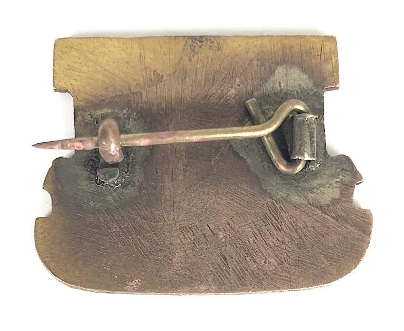 A scarce original circa pre-war manufactured 'The Whippet Club pin brooch'; gilt brass example, depicting an embossed silhouette of the beautiful sighthound against an electic blue enamel ground resting within a ribbon title scroll. Very good condition, complete with original pin fittings, no enamel damage.