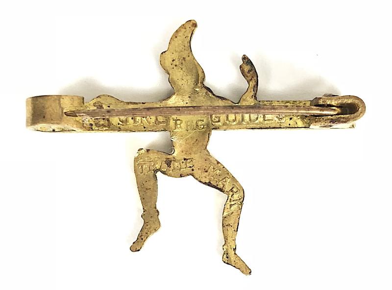 A scarce original pre war 'Brownie Guide promise badge', in the form of a brass pixie mounted on a sturdy bar, in the form of a brass pixie mounted on a wide bar with right hand just resting within, the reverse impressed 'Girl Guides REG Trade Mark'. Good condition, complete with original pin fittings, minimal polishing.
