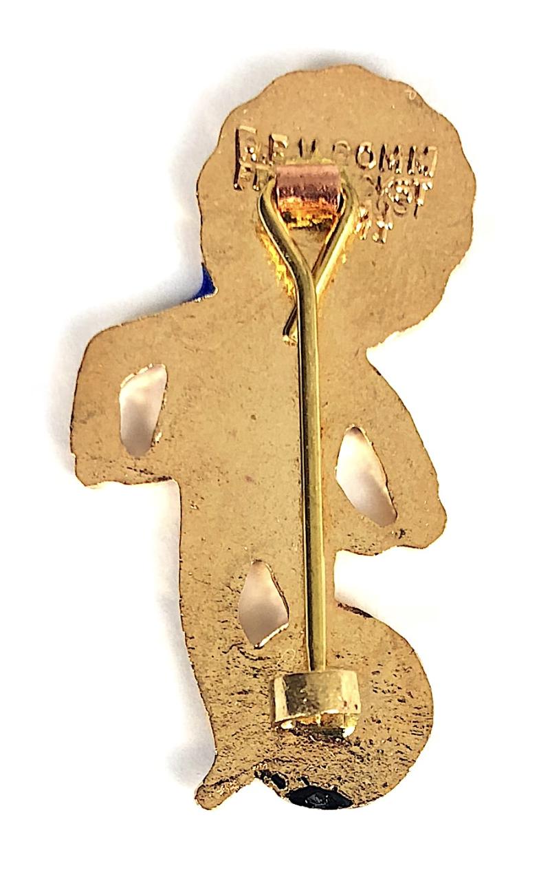 A good original circa 1970 period 'Robertson's Golly footballer promotional pin badge', the reverse impressed with maker's details 'R.E.V. Gomm Frederick St B'ham I'. Very good condition, complete with original pin fittings, no stress marks or damage to the enamel, gilt finish remains bright.
