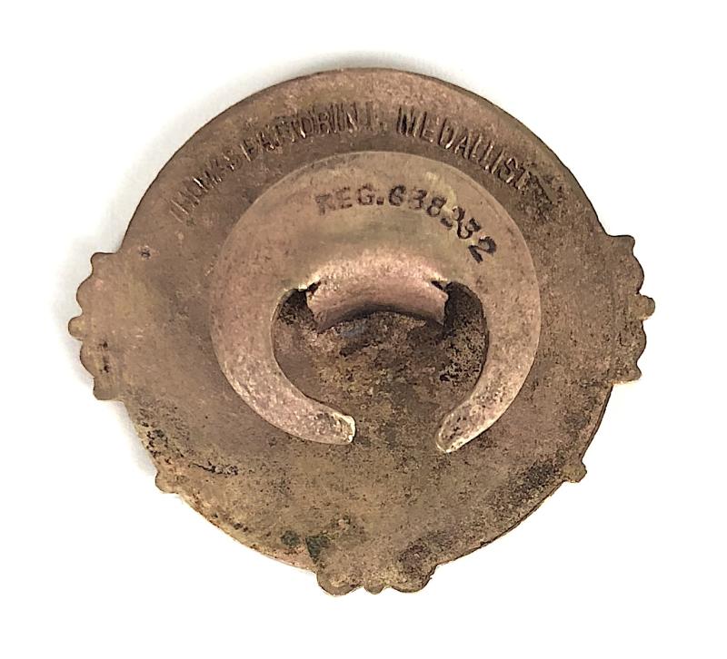 A rare original First World War period 'Antrum Allen On War Service 1915 identification badge'; ornate gilt brass example bearing white enamel title surround, the centre with blue enamel embossed shield depicting five maidens heads from the Reading Berkshire coat of arms; the reverse impressed with early maker's details 'Thomas Fattorini Medallist Bolton' and 'Reg.638232' a design and registration date of 1914. Very good condition, complete with original buttonhole lapel fitting, no damage to the enamel.